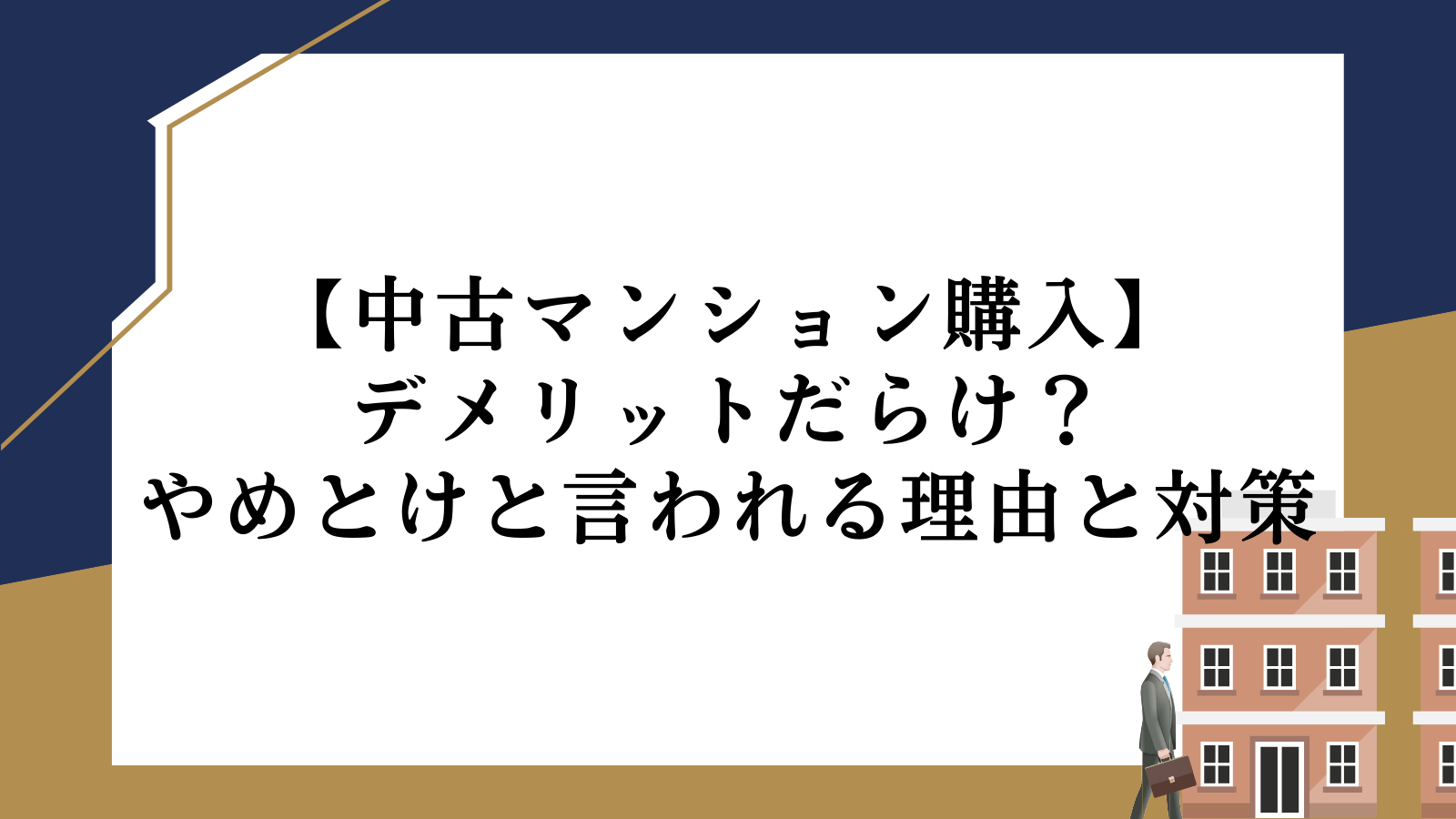 「中古マンションはやめとけ」そんな言葉を耳にして、購入を躊躇していませんか? この記事では、ネット上の噂の真偽から、プロが警戒する「管理不全」や「見えない配管... -